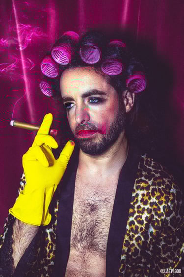 J’m’inspire du cinéma, du glamour hollywoodien, du kitsch, de la satire et de la pop culture 80s/90s.